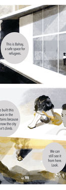 Kunwari is a dystopia that appears to live happily in a technologically advanced world, set in a giant moving city that thrives off of the power of its followers and their blind idolization. Upon closer inspection, readers discover that the city abuses its influential power to plow through foreign lands, forsaking anyone in their path, displacing native peoples from their homes, and exploiting resources. Due to the influential power of screens, the city-dwellers live in blissful ignorance to the harm they cause to the world.