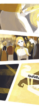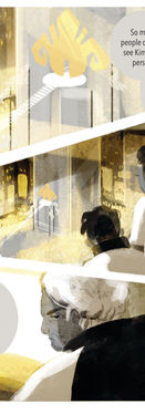 an expansive world much like our own, a modern age of screens. With the convenience of technology, we become detached from the harmful impacts we leave on others and the environment. Kunwari follows the story of Kimera, a girl who is exploited as a mascot-like figurehead in a city of avid followers. Reading the comic reveals themes on colonization, abuse of power, and societal habits bordering on religious worship, while being surrounded by screens that allows everyone to forget their destructive actions and continue to indulge themselves in them.